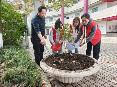 3月9日下午,师生们团结协作,开展“清整-种植-播种”一体化劳动实践。首先对图书馆周边花台进行全面清理,拔除杂草、疏松土壤,栽种栀子花苗,撒播十余种花种,寓意“播种当下、静待花开”,以汗水浇灌绿色希望,为图书馆增添生机与期待。活动现场,大家默契配合,在劳动中传递生态理念,在协作中厚植育人情怀。